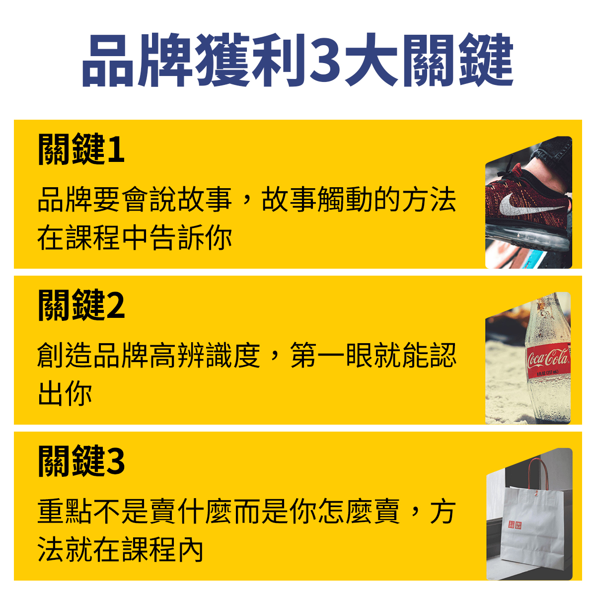 沒有高深理論,不用工具模組,課程全程,阿旗將以最『淺顯易懂』的方式來說明品牌操作邏輯,絕對讓您在無形中,發現離高效獲利的成功品牌竟然這麼近!