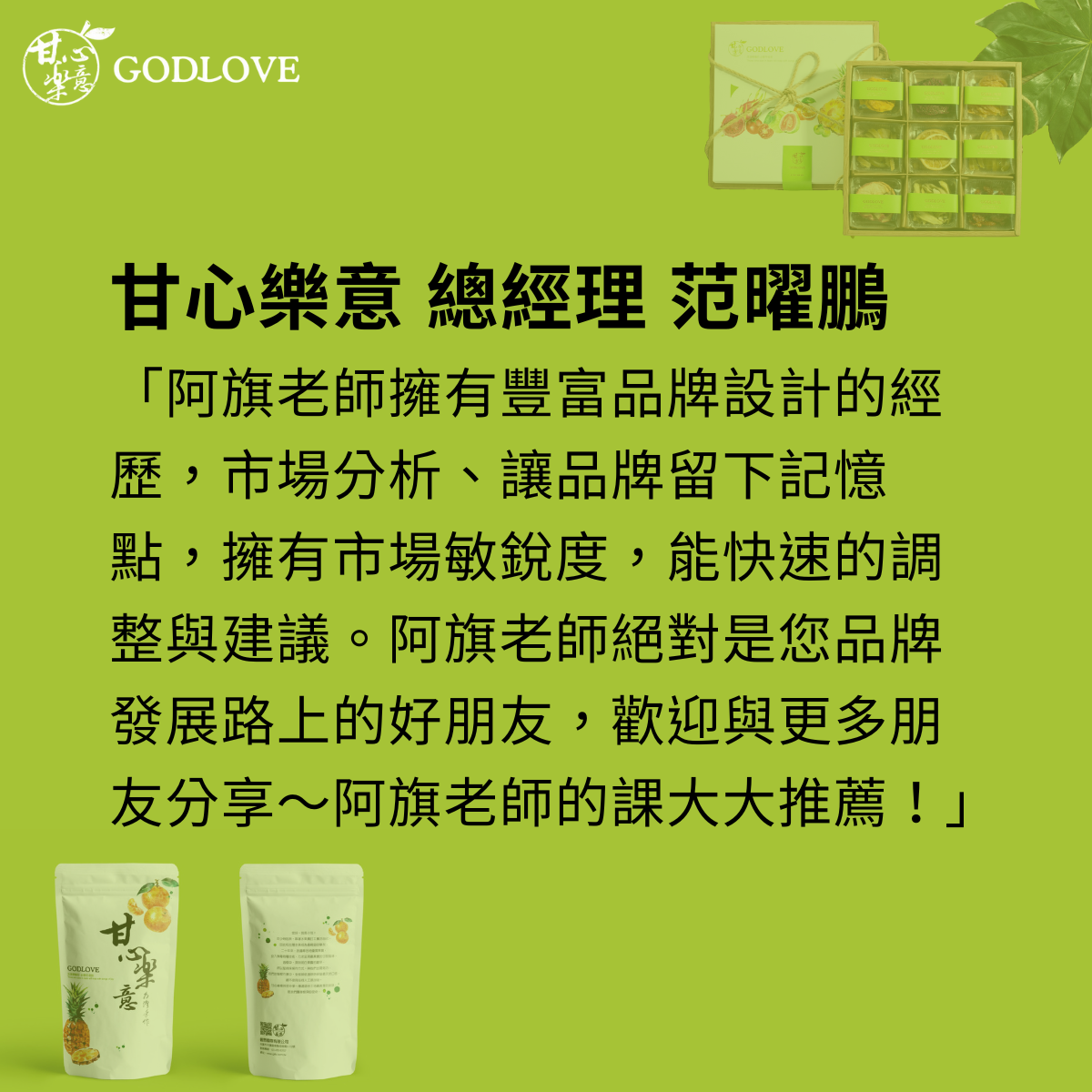 阿旗在業界的專業經驗20年,執行超過300多個品牌,涵括許多不同市場與營運面向的品牌操作,這些品牌的成功經驗, 絕無藏私,為您完全解密。